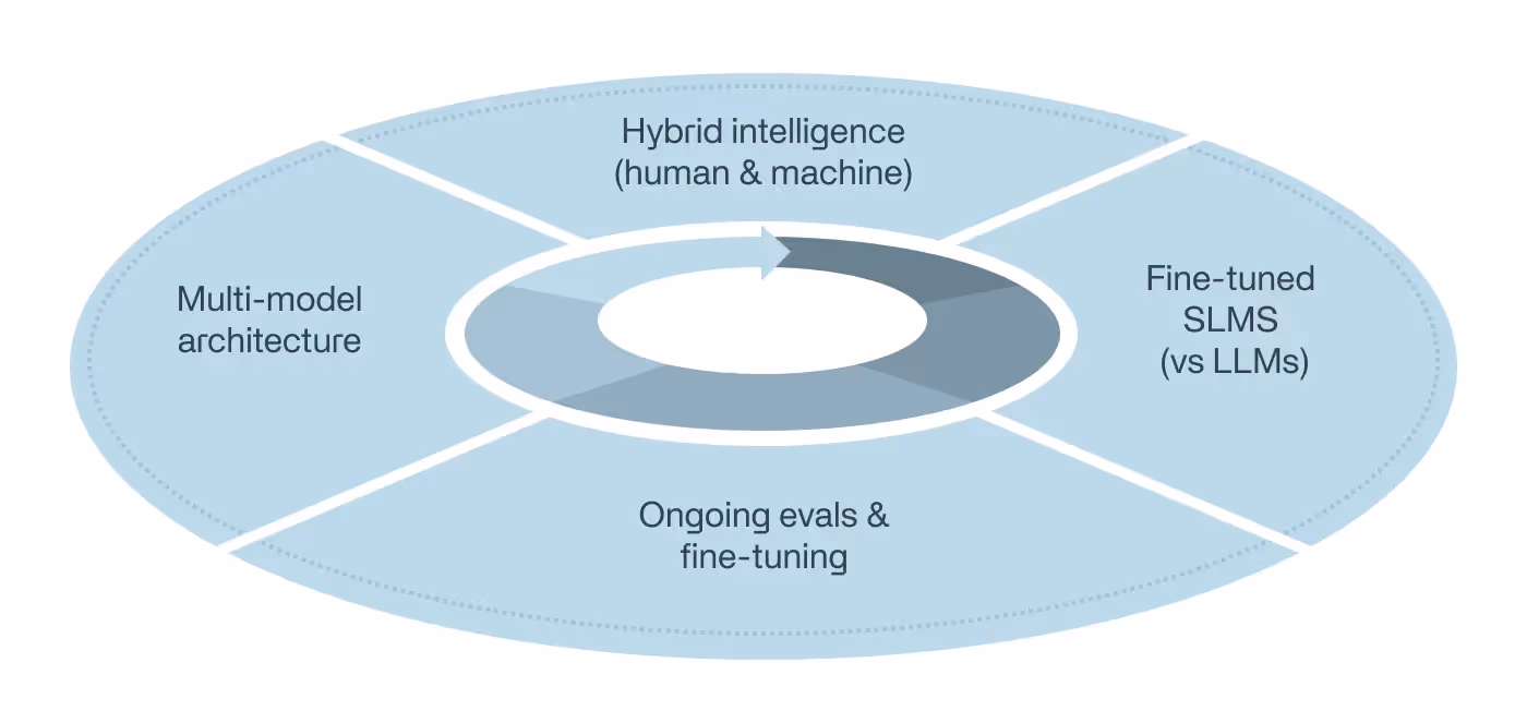 For most enterprise use cases, purpose-built models, fine-tuned for that use case, will outperform LLMs at a significantly lower cost. For instance, in the financial services sector, fraud detection would require a model tailored specifically to identify nuanced patterns in transaction data, whereas a general-purpose model would risk false positives. Focusing on building the right tool for the job is what can transform AI from a promising experiment into a powerful business driver.
