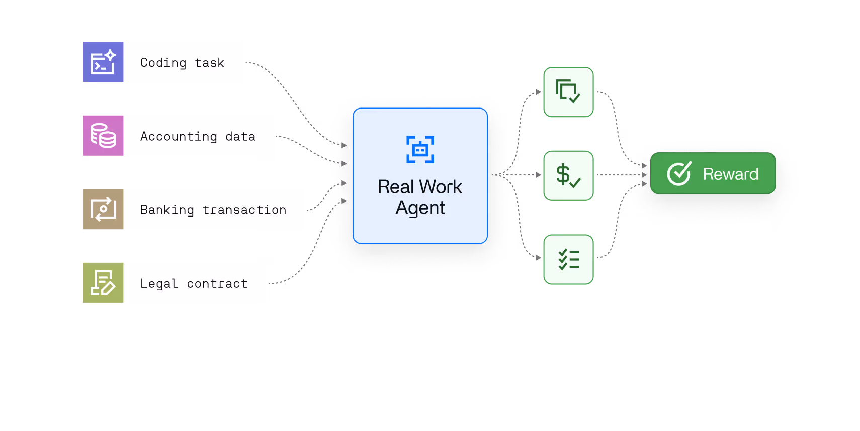 Tasks are drawn from work that creates real value like coding, accounting, banking, legal and compliance. Agents learn to complete the work, not just pass the test.